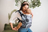 - Regulowane pasy naramienne zapewniające wygodę dostosowania nosidła do rodziców o różnej budowie ciała.